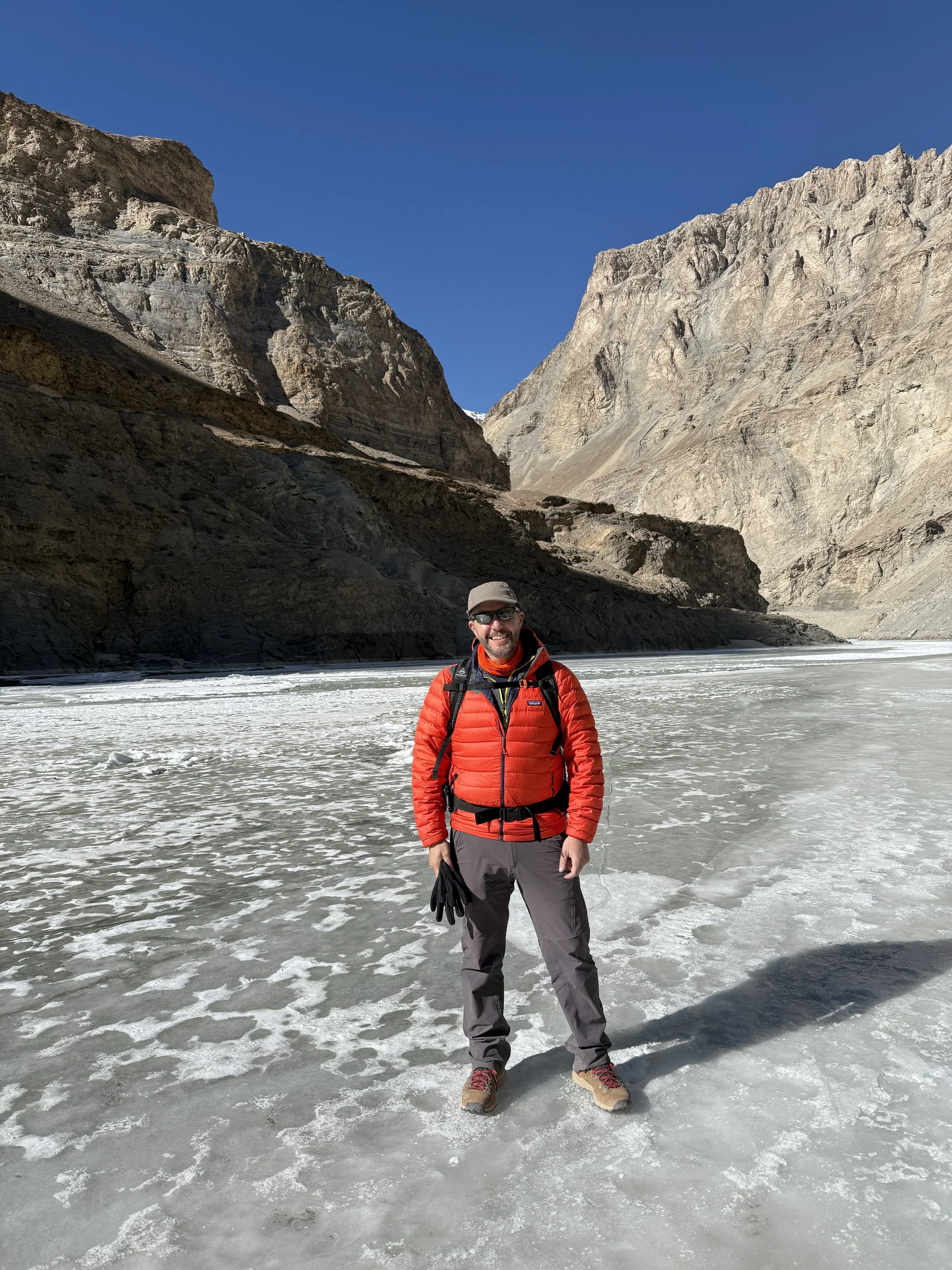 I met my friend Ratnesh Pandey, and we travelled together to Shang Sumdo Village in Hemis National Park to try and spot the elusive Snow Leopard. In freezing temperatures, and with the help of some very experienced spotters, we managed to see this beautiful but elusive animal a couple of times through spotting scopes. I was also able to go out on some high-altitude runs at -10°C. We returned to Leh and travelled south towards the Zanskar River for the Chadar Trek.