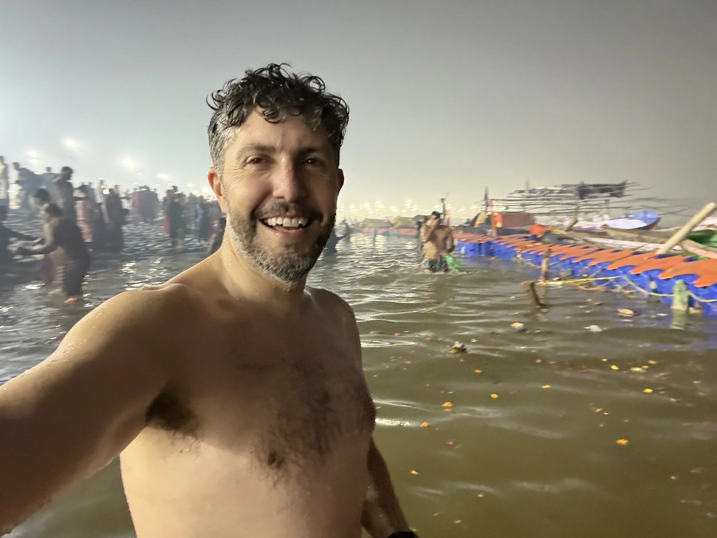 From the isolation of the Himalayas, I took a flight to Prayagraj, a city formerly known as Allahabad, to be a part of the Maha Kumbh Mela. I've been to the Triveni Sangam (the meeting of three rivers) before, but I wanted to be a part of this massive Hindu pilgrimage and one of the world's largest religious gatherings. Because of a special planetary alignment that happens every 144 years, this year's Kumbh Mela was especially auspicious. I arrived at the airport in Prayagraj in the evening, and a friend of Ratnesh picked me up on his scooter (no private cars were allowed to move within the city). I went to the hotel to drop off my backpack and change into traditional clothes, before heading to the Triveni Sangam. It was the middle of the night, but thousands of pilgrims were still everywhere. After offering my intentions to the Ganges, I walked into the river wearing only my underwear, and submerged myself in its murky waters. I've been part of many pilgrimages from many religions. With the Kumbh Mela, as with the others, it's always been about the sense of community with fellow pilgrims, and not about the religious side of it. It had been a perfect week, experiencing three of my bucket list items in such a short time.